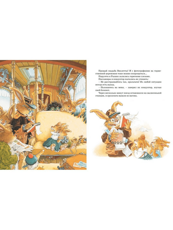 В этой книжке вас ждёт новая встреча с крольчатами папы Онессима. Эти любознательные непоседы всякий раз попадают в какую-нибудь историю. Вот и на этот раз вместе с четырьмя братишками и их сестрёнкой вы станете участниками невероятных событий. Сначала вы попадёте в волшебный мир цирка. Розмаринчику непременно хочется узнать, как делают фокусы, и сам знаменитый мэтр Сигма решил помочь ему в этом… – Парад-алле. Потом вместе со всем кроличьим семейством вы побываете у моря. Но поскольку все кролики боятся воды, крольчата придумали, как покататься на лодке, не заходя в воду. А вот что из этого получилось… – Встреча с пиратами. А в конце у вас будет шанс отправиться вместе с крольчатами в путешествие по железной дороге, ведь поездка на свадьбу к кузине Виолетте – самое настоящее приключение. – Путешествие с приключениями.