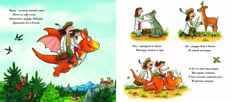 Она – принцесса и знаток микстур, пилюль и трав. Он – рыцарь йода и бинтов и ловкий костоправ. А Зог их возит взад-вперёд, Как верная лошадка. У Зога мягкий, плавный взлёт… И жёсткая посадка. Перелетные врачи могут вылечить русалку, льва и единорога, но под силу ли им спасти короля от загадочной болезни?